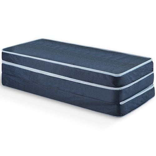Características: Medidas do Puff Aberto: 180 cm x 128 cm x 10 cm (Comprimento x Largura x Altura) Medidas do Puff Fechado: 60 cm x 128 cm x 30 cm (Profundidade x Largura x Altura) Material: Espuma de densidade 33 Tecido de revestimento: Jacquard Cor: Azul Marca: BF Colchões