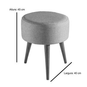 Altura 45 cm Profundidade 40 cm Largura 40 cm Peso 7 kg Formato do assento Redondo Peso suportado por assento 150 kg Tecido Linho Material da Estrutura Madeira Eucalipto reflorestada Assento Espuma D26 soft 4cm espessura Exige montagem? Não, apenas ajuste dos pés