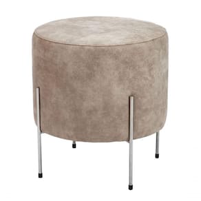 Puff Estofado Redondo 0,47mt Diâmetro Base Metal Eros Bege - Pufe redondo Metal