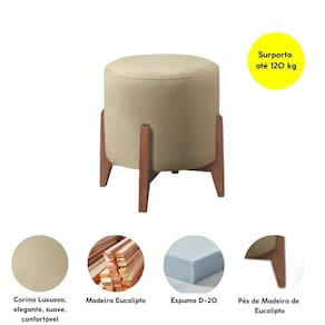 O Puff Redondo para sala de estar é revestido em tecido Corino, base em madeira eucalipto deixando os pés aparentes trazendo um toque de modernidade, é o móvel perfeito para valorizar a sua decoração.