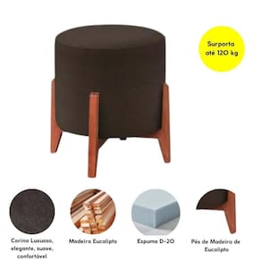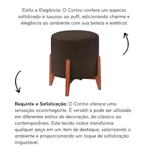 O Puff Redondo para sala de estar é revestido em tecido Corino, base em madeira eucalipto deixando os pés aparentes trazendo um toque de modernidade, é o móvel perfeito para valorizar a sua decoração.