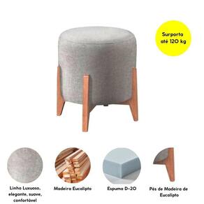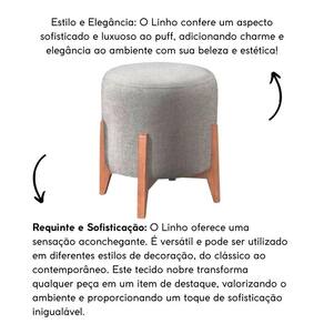 O Puff Redondo para sala de estar é revestido em tecido Linho, base em madeira eucalipto deixando os pés aparentes trazendo um toque de modernidade, é o móvel perfeito para valorizar a sua decoração.