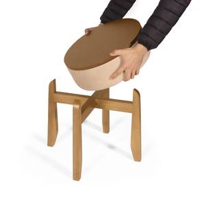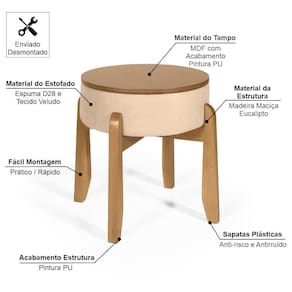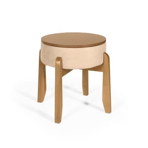 Puff Estofado Vira Mesa Redondo New Liz em Madeira