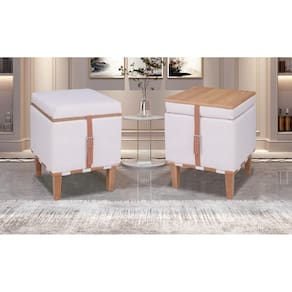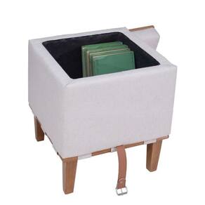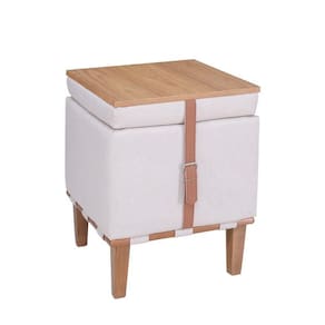 Puff Flex Decorativo Multifunção Quadrado Baú Mesa De Centro 3 Em 1 Linho Claro