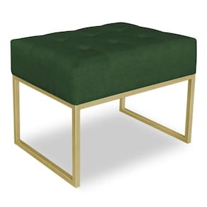 Puff Lisa Suede Base Metálica Industrial Dourado Verde