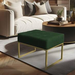 Puff Lisa Suede Base Metálica Industrial Dourado - Pallazio Cor Verde