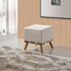 Puff Liso com Base Madeira D26 Soft Linho Sofatec - Bege
