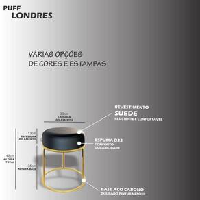 PUFF LONDRES Medidas do banco montado; Largura 35 cm Profundidade 35 cm Altura total 48 cm Peso suportado até 120 kg