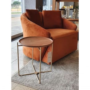 Puff Madeira 0,46 Diâmetro Base Metal Maseira Tampo Madeira Jequitibá -
