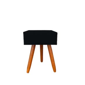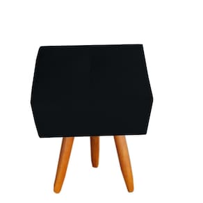 Puff Malu Decorativo Pés Palito Suede Preto - D'classe Decor