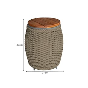 IMAGENS MERAMENTE ILUSTRATIVAS REALIZADO EDIÇÃO, PODENDO HAVER UMA PEQUENA VARIAÇÃO DE COR DEPENDENDO DE CADA TELA OU MONITOR.Puff Mesa Garden em Corda NÃutica Base em AlumÃnio Cinza e Tampo em Madeira Rami