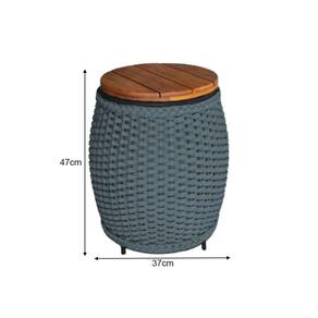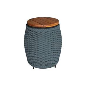 IMAGENS MERAMENTE ILUSTRATIVAS REALIZADO EDIÇÃO, PODENDO HAVER UMA PEQUENA VARIAÇÃO DE COR DEPENDENDO DE CADA TELA OU MONITOR.Puff Mesa Garden em Corda NÃutica Base em AlumÃnio Preta e Tampo em Madeira Cinza