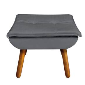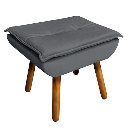 Puff Opala Veludo Grafite Pés Palito Castanho - D'Rossi