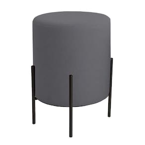 Puff Orgânico Boucle Thor Com Pés De Ferro Preto Cinza Escuro -