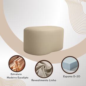 Puff Orgânico — Design Versátil para Ambientes Contemporâneos Com linhas suaves e um desenho orgânico que foge do convencional, este puff é a escolha ideal para quem valoriza conforto aliado a um design atual. Sua forma fluida cria uma estética leve e sofisticada, capaz de se integrar com naturalidade a diferentes composições de interiores. Pensado para a rotina moderna, ele oferece múltiplas possibilidades de uso: funciona como assento extra na sala de estar, apoio elegante aos pés, complemento funcional no quarto ou até mesmo como peça de apoio em closets e halls. Seu formato sem quinas aparentes reforça a sensação de acolhimento e bem-estar, tornando o ambiente mais convidativo. O acabamento estofado, com textura agradável ao toque, evidencia o cuidado nos detalhes e proporciona conforto no uso diário. Além disso, seu design atemporal permite fácil combinação com diferentes estilos decorativos, como o contemporâneo, minimalista e escandinavo, valorizando tanto espaços residenciais quanto corporativos. Mais do que um item decorativo, este puff é um móvel versátil que equilibra estética e funcionalidade. Uma peça curinga para quem busca soluções inteligentes, elegantes e adaptáveis — daquelas que acompanham mudanças de layout e permanecem atuais ao longo do tempo. ESPECIFICAÇÕES: Estrutura em madeira de eucalipto, resistente e durável. Assento revestido em linho de alta qualidade. Design moderno, minimalista e fácil de combinar. Ideal para sala, quartos e penteadeiras. DIMENSÕES: Altura: 45 cm Largura: 84 cm Profundidade: 45 cm Peso: 10 Kg Espuma: Assento D-20 Distância assento ao chão: 45 cm MOTAGEM - Produto vai montado. GARANTIA DA FÁBRICA Cada peça passa por uma curadoria rigorosa que assegura beleza, qualidade e durabilidade. Ainda assim, caso algum produto apresente defeito de fabricação dentro de 90 dias após a entrega, nosso suporte humano, atencioso e altamente profissional estará pronto para atender você com agilidade e eficiência. Valorizamos sua confiança e estamos comprometidos em oferecer soluções rápidas que preservem sua experiência positiva com a marca. Aqui, garantir sua tranquilidade é parte do nosso padrão de excelência. CUIDADOS A LIMPEZA: Utilize um pano limpo e levemente úmido. Indicado para ambientes internos, evite exposição direta ao sol, calor excessivo e umidades. INFORMAÇÕES IMPORTANTES - Pode haver diferença entre a imagem e o produto real devido a tratamento de imagens e calibração do monitor. - Não garantimos a mesma cor para futuras compras devido à variação em lotes de tecido. - Não inclui objetos de decoração e eletros. - Confira as medidas para garantir que o produto passe por escadas, elevadores e portas.