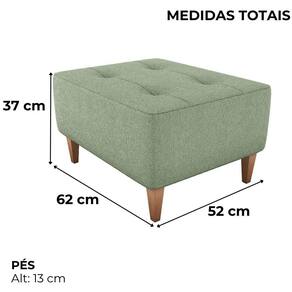 Puff Piva, praticidade e charme para complementar sua decoração. Estrutura em Madeira de Eucalipto (de reflorestamento), estofado com espuma D20 e revestido em tecido bouclê (textura encorpada macio ao toque). Também possui detalhes na costura do assento, 4 pés em madeira e suporta até 110 kg. Este produto será entregue em 01 volume.