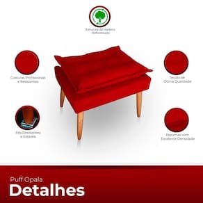 Puff Para Sala E Quarto Madeira Decorativo Opala Suede Cor Vermelho