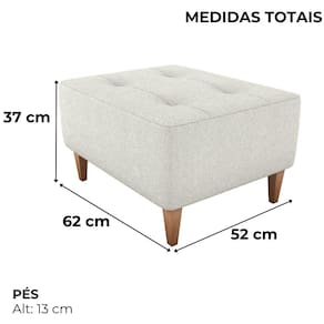 Puff Piva, praticidade e charme para complementar sua decoração. Estrutura em Madeira de Eucalipto (de reflorestamento), estofado com espuma D20 e revestido em tecido bouclê (textura encorpada macio ao toque). Também possui detalhes na costura do assento, 4 pés em madeira e suporta até 110 kg. Este produto será entregue em 01 volume.
