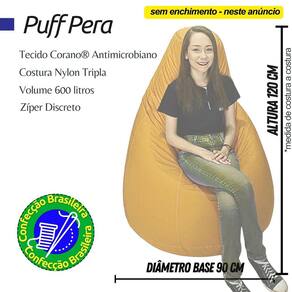 Capacidade Interna: Com uma capacidade de enchimento de 700 litros, o Puff Pera oferece espaço amplo para flocos de isopor, flocos de espuma ou uma combinação dos dois, proporcionando a você o controle total sobre o conforto desejado.