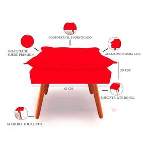 - altura: 52 cm; - largura: 46 cm; - profundidade: 62 cm. O que você está adquirindo: 01 unid. Puff opala com pés de madeira envernizado