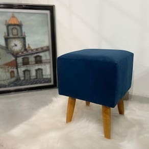 Puff Puf Quadrado Suede Azul Marinho Pés Palito - Preto