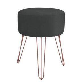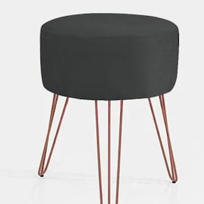 Puff Puf Suede Preto Pé De Ferro Rosê Gold Para Sala E Hall