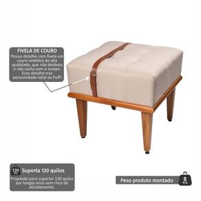 O Puff Yarin possui formato quadrado que traduz ao móvel a sensação de aconchego, sendo ideal para utilizar em ambientes internos. Este item é capaz de proporcionar momentos descontraídos e de lazer, devido ao seu conforto. A peça tem como detalhe uma cinta em couro ( sintético ) para destacar sua beleza. O Puff Yarin fica ótimo na sala de estar, quartos ou onde sua imaginação quiser. É fabricado em madeira eucalipto reflorestada e sua base em madeira Tauari (madeira maciça). Possui espuma D28 soft de 40cm de ótima qualidade, revestida com uma manta siliconada antialérgica, além de detalhes em costura fina, que pode ser utilizado em diversos ambientes. Acabamento dos Pés: Verniz Ambiente Principal: Sala de Estar codigo_ean: 7900288284693 Cor: Bege Claro Cor do Produto: Bege Claro Escala de Brilho: Fosco Informações Complementares: As fotos podem sofrer alteração de cor conforme a calibragem da tela do celular ou computador. Itens Inclusos: 1 Puff Linha ou Coleção: Yarin Manual de Especificação Técnica: https://product-hub-prd.madeiramadeira.com.br/258693097/documents/2dbbe8a0-9a4e-4e53-a667-7e35e9b58c153300621516817617702795602.pdf Manual de Montagem e Instalação: https://product-hub-prd.madeiramadeira.com.br/258693097/documents/441e1d54-7369-4a1b-9177-d7eabcdb3ca13300620516817617702795566.pdf Marca: Agarb Decor Material da Estrutura: Madeira Eucalipto Material dos Pés: MADEIRA EUCALIPTO Necessita Montagem: Não Origem do Produto: Nacional Peso: 8 kg Possui Baú: Não Possui Pés: 04 Possui Rodízio: Não Recomendações de Uso, Manutenção e Limpeza: Umedeça um pano limpo e passe sobre a superfície e logo em seguida passando outro pano limpo e seco. Não molhar! Evitar exposição ao sol para que não sofra alterações na cor do tecido. Não utilizar escovas ou cedras duras. Suporta Até (kg): 120 kg Marca: Não Informado