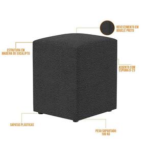 O Puff Quadrado Decorativo L02 Bouclê Preto - Lyam Decor é ideal para você que busca por elegância e praticidade em sua decoração! É estruturado com madeira de eucalipto e revestido em Bouclê, tecido de excelente qualidade.