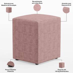 O Puff Quadrado Decorativo L02 Linho Rosa - Lyam Decor é ideal para você que busca por elegância e praticidade em sua decoração! É estruturado com madeira de eucalipto e revestido em Linho, tecido de excelente qualidade.
