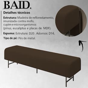 Puff Recamier 163 cm Pes Metal Baid Veludo, com estilo único e a qualidade que você busca, seu desenho clean dispõe de harmonia para qualquer ocasião. Estrutura em madeira de reflorestamento (pinus, eucaliptos e placas de MDF). Composto por madeira imunizada contra mofo, cupim e microrganismos, revestimento em tecido veludo, estrutura em espuma D-20, adornos em espuma D-14, conta com pés em metal de 21 cm de altura. Possui design requintado, que oferece sofisticação, charme e elegância ao seu ambiente. Este móvel chegará na sua casa separado em 01 volume.