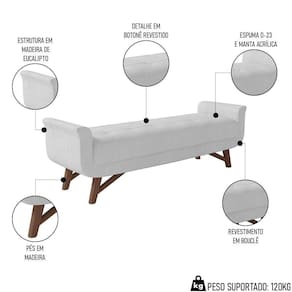 Vamos completar o seu ambiente com um móvel elegante e aconchegante?! Aqui temos a opção perfeita para você! Vem conhecer o Puff Recamier Calçadeira 140cm Base Madeira Neville Z37 Boucle Branco, da Mpozenato!