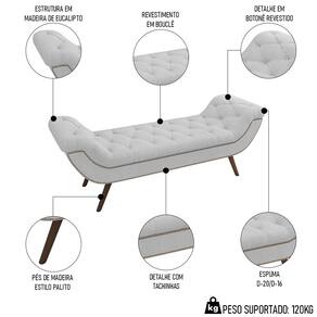 A Calçadeira Recamier Vêneto é uma espécie de Puff Para Quarto que tem como finalidade servir de apoio na hora de se arrumar, seja para calçar os sapatos ou se vestir, além de manter a cama posta sempre organizada. Já no quesito decoração, a calçadeira é uma peça coringa, graças ao seu design clássico, estilo provençal que contribui para criar um ambiente aconchegante e harmonioso. E o que dizer então dos detalhes em tachinhas e dos pés palitos? Só suspiramos de tanto amor. Ahhh e não podemos esquecer da versatilidade, porque é possível dispor essa peça na Sala De Estar e até mesmo no hall de entrada, aproveitando ao máximo esse produto com soluções criativas para a sua casa.