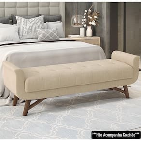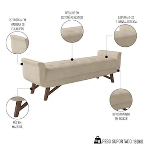Vamos completar o seu ambiente com um móvel elegante e aconchegante?! Aqui temos a opção perfeita para você! Vem conhecer o Puff Recamier Calçadeira 195cm Base Madeira Neville P02 Bouclé Bege, da Mpozenato!