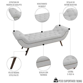 Altura: 60 cm | AssemblyRequired: Sim, sugerimos a contratação do nosso serviço de montagem (para os CEPs em que o serviço está dispon | Color: Branco | ColorFamily: Branco | ColorSimple: Branco | ColorSupplier: Branco | Cor: Branco | Gênero: Unisex | Largura: 195 cm | Manual: Sim | Marca: Mpozenato | Origem: | OriginCountry: | OriginState: PR | Peso: 21 kg | ProductHeight: 60 | ProductInstructions: Produto para uso em ambiente interno, nao devendo ficar exposto ao sol, calor e umidade excessivos. | ProductLength: 52 | ProductWarranty: 90 dias após o do produto | ProductWeight: 21 | ProductWidth: 195 | Profundidade: 52 cm | Requere montagem: Sim | SizeDescription: 60 x 195 x 52 cm | SupplierSimpleName: Puff Recamier Calçadeira 195cm Pés Palito Madeira Venêto P02 Bouclé Branco - Mpozenato | Tipo de Garantia: Fabricante