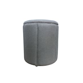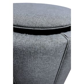 Item: PUFF REDONDO BAÚ NÃO É SEGREDO DEBRUM LINHO CINZA 40x45