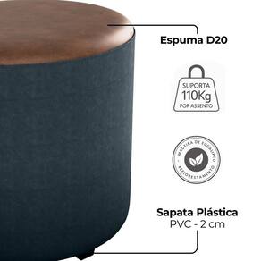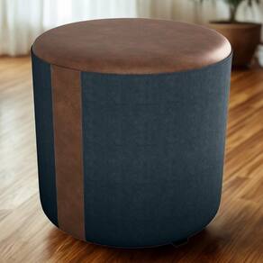 Puff Redondo Copenhage, conforto e estilo compacto! Estrutura em Madeira de Eucalipto (de reflorestamento) e MDF, estofado com espuma D20 e revestido em Veludo Light, com detalhes de costura em Corino Marrom (laterais e assento), além das sapatas plásticas (PVC) e design redondo que suporta até 110 kg. Este produto será entregue em 01 volume.