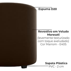 Puff Redondo Copenhage, muito conforto e estilo compacto! Estrutura em Madeira de Eucalipto (de reflorestamento) e MDF, estofado com espuma D20 e revestido em Veludo Maserati. O design redondo é valorizado pelo detalhe de costura vertical nas laterais, além das sapatas plásticas (PVC), suporta até 110 kg. Este produto será entregue em 01 volume.