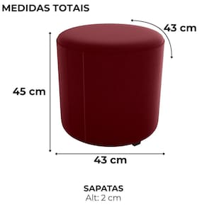 Puff Redondo Copenhage, muito conforto e estilo compacto! Estrutura em Madeira de Eucalipto (de reflorestamento) e MDF, estofado com espuma D20 e revestido em Veludo Maserati. O design redondo é valorizado pelo detalhe de costura vertical nas laterais, além das sapatas plásticas (PVC), suporta até 110 kg. Este produto será entregue em 01 volume.