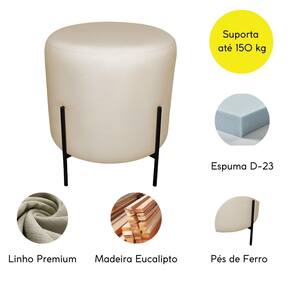 Estrutura: Madeira Eucalipto Densidade da Espuma: Assento D-23 Tecido: Linho. Material dos pés: Ferro. Montagem: O produto vai montado. Instruções de Limpeza: Utilizar um pano limpo e levemente úmido. Você irá receber: 01 volume.