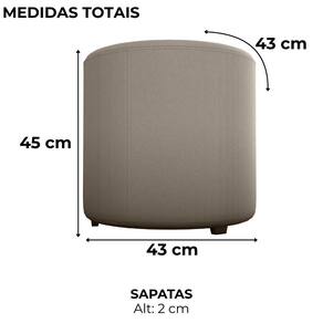 Baterias são necessárias?: Não | Certificação de teste externa: Não se aplica | Componentes incluídos: Parafusos | Exige montagem: Sim | Fabricante: Matrix | Is Fragile: Não | Número da peça: Não se aplica | Número do modelo: Copenhage | Palavras-chave de Pesquisa: Puff Redondo | Peso do item: 8 | bullet_point 0: Sapatas niveladoras | bullet_point 1: Revestido em Veludo | bullet_point 2: Madeira de Eucalipto | Quantidade de itens: 1 | item_dimensions: Altura: 45 cm Largura: 43 cm Profundidade: 43 cm | Marca: Matrix | Forma: Redondo Cor: Marrom Claro