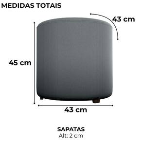 Puff Redondo Copenhage, muito conforto e estilo compacto! Estrutura em Madeira de Eucalipto (de reflorestamento) e MDF, estofado com espuma D20 e revestido em Veludo. O design redondo é valorizado pelo detalhe de costura vertical nas laterais, além das sapatas plásticas (PVC), suporta até 110 kg. Este produto será entregue em 01 volume.