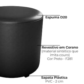 Puff Redondo Copenhage, muito conforto e estilo compacto! Estrutura em Madeira de Eucalipto (de reflorestamento) e MDF, estofado com espuma D20 e revestido em Corano (material sintético que imita couro). O design redondo é valorizado pelo detalhe de costura vertical nas laterais, além das sapatas plásticas (PVC), suporta até 110 kg. Este produto será entregue em 01 volume.