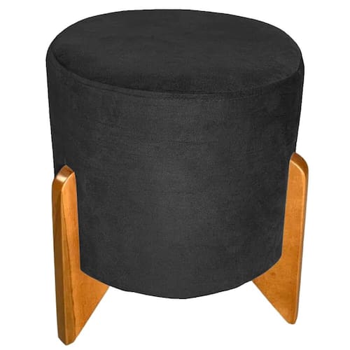 Puff Redondo em Veludo com Pés de Madeira Rio Minas O Puff Redondo em Veludo com Pés de Madeira Rio Minas tem utilidades diversas, além de transmitir elegância para o cômodo. Aconchegante e encantador, tradicional e contemporâneo. Essa dualidade tão desafiadora para o design e a essência da decoração. Sem dúvidas uma peça extremamente versátil. Não perca tempo, garanto o seu e decore o seu ambiente com muito bom gosto.\nMEDIDAS\nAltura 50cm\nLargura 40cm\nProfundidade 40cm\nCARACTERÍSTICAS\nFabricante Rio Minas\nModelo Puff Redondo em Veludo\nGarantia 3 meses\nEstilo Moderno\nRevestimento Veludo\nFormato Redondo\nEstrutura MDF / MDP\nINFORMAÇÕES IMPORTANTES\nObjetos decorativos que porventura apareçam na foto, não acompanham o produto. Não nos responsabilizamos pela montagem/instalação dos produtos.\nMontagens, desmontagens e instalações são responsabilidades do cliente. Indicamos que contrate uma empresa de montagem ou um montador de sua confiança.\nAlém disso, favor verificar se os pés e acessórios estão dentro do forro inferior do produto. Em suma, todas as informações divulgadas sobre o produto são de responsabilidade do Fabricante.\nAs cores do produto podem variar de acordo com o seu monitor, a iluminação do ambiente em que você está e até mesmo a sua percepção visual. Além da cor, pequenos detalhes e acabamentos podem não ficar evidentes na foto, por isso as imagens são meramente ilustrativas.