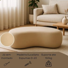 Revestido em suede aveludado, ele não apenas encanta ao olhar, mas também convida ao toque: cada superfície é macia, criando uma experiência sensorial que valoriza o momento de descanso. Versátil, pode ser como assento extra, apoio para os pés ou até como mesa de centro improvisada, sempre adicionando personalidade ao décor.