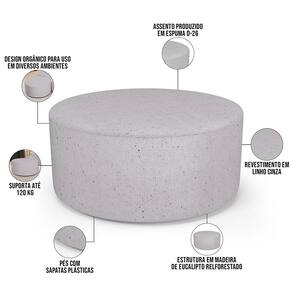 Características: Estrutura em madeira de reflorestamento de eucalipto. Revestimento em Linho de alta qualidade na cor Cinza. Assento com espuma D-26 de alta resistência. Design orgânico para uso em diversos ambientes. Pés sapatas plásticas. Peso suportado: Até 120 kg.