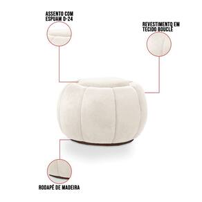 O Puff Cloud é um móvel que combina formas artísticas, conforto e durabilidade. Ele tem um design orgânico que remete às formas encontradas na natureza como as nuvens criando um espaço acolhedor e relaxante. Além da sua simetria e curvas suaves, ele contém sapatas plásticas (Fixa) e um revestimento em tecido Bouclê que cria uma conexão entre a peça e o ambiente. Pode ser utilizado em sala de estar, recepções, escritórios, lojas e espaços comerciais, ou qualquer outro espaço que você queira decorar com estilo e bom gosto. Ele tem uma estrutura em madeira de reflorestamento eucalipto, que garante a resistência e a sustentabilidade do produto. Ele suporta até 120 kg de peso, podendo ser utilizada por pessoas de diferentes biotipos. Inclui almofada solta com enchimento de fibra siliconada, oferecendo versatilidade para diferentes usos e necessidades. Ele tem um acabamento reforçado e espuma de qualidade D24, que oferece maciez e aconchego. Ele apresenta detalhes de costura refinados em formato arredondado resultando em um acabamento impecável conferindo muito mais valor e elegância ao produto. Ele é fácil de transportar, pois tem um peso leve e um tamanho compacto. O Puff Cloud é uma peça que vai fazer a diferença na sua decoração e no seu bem-estar. Garanta já o seu!