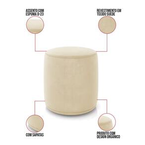 Quantos puffs você tem em casa? Nenhum? Então está na hora de mudar isso! Nada como chegar em casa, relaxar e ter um cantinho especial para esticar os pés, não é mesmo? Com o Puff Malu, não tem segredo, seus momentos de descanso serão garantidos. Além da sua simetria artística e curvas suaves, ele contém um revestimento em Suede que harmoniza com qualquer ambiente. Pode ser utilizado em sala de estar, recepções, escritórios, lojas, espaços comerciais, ou qualquer outro espaço que você queira decorar com estilo e bom gosto. Ele tem uma estrutura em madeira de reflorestamento eucalipto, que garante a resistência e a sustentabilidade do produto. Ele suporta até 120 kg de peso, podendo ser utilizada por pessoas de diferentes biotipos. Ele tem um acabamento reforçado e espuma de qualidade D23, que oferece maciez e aconchego. As sapatas plásticas (fixa) são pequenas proteções colocadas na base dos pés para evitar que eles risquem ou danifiquem o chão. O Puff Malu é um móvel de alta qualidade, que exala sofisticação e conforto. Ele é fácil de transportar, pois tem um peso leve e um tamanho compacto. Ele vai trazer charme, conforto incomparável e durabilidade para o seu ambiente. Corra e garanta seu Kit 2 Puffs agora mesmo!