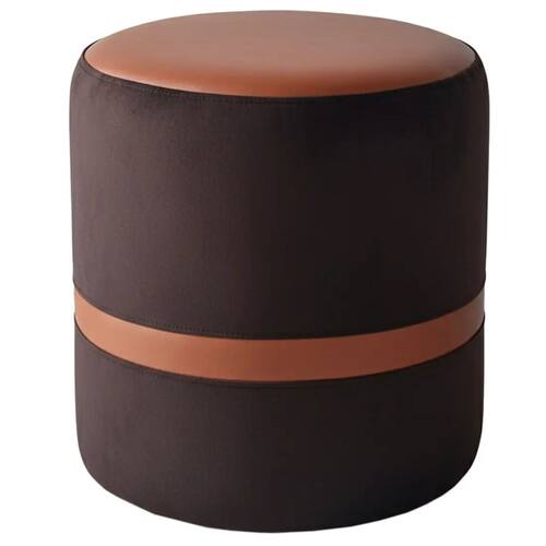 Puff Redondo Veludo e Corino com Pés de PVC Rio Minas O Puff Redondo Veludo e Corino com Pés de PVC Rio Minas exala uma sofisticação discreta, sendo a peça perfeita para qualquer ambiente elegante. Seu design imponente é envolto em um rico tecido de toque suave, contrastando de forma sublime com o luxuoso Corino na cor caramelo que reveste a superfície do assento. A mesma tonalidade e material se repetem em uma faixa horizontal elegantemente posicionada no corpo do móvel, uma tira que o abraça, adicionando uma textura visual e um toque artesanal que eleva sua estética. Com sua silhueta moderna e acabamento impecável, este Puff é mais do que um simples assento ou apoio para os pés, é uma declaração de estilo refinado e conforto.\nMEDIDAS\nAltura  46cm\nLargura  40cm\nProfundidade  40cm\nCARACTERÍSTICAS\nFabricante Rio Minas\nModelo Puff Redondo Veludo e Corino\nGarantia 3 meses\nEstilo Moderno\nRevestimento Veludo, com Detalhe em Corino\nFormato Redondo\nEstrutura MDF / MDP\nINFORMAÇÕES IMPORTANTES\nObjetos decorativos que porventura apareçam na foto, não acompanham o produto. Não nos responsabilizamos pela montagem/instalação dos produtos.\nMontagens, desmontagens e instalações são responsabilidades do cliente. Indicamos que contrate uma empresa de montagem ou um montador de sua confiança.\nAlém disso, favor verificar se os pés e acessórios estão dentro do forro inferior do produto. Em suma, todas as informações divulgadas sobre o produto são de responsabilidade do Fabricante.\nAs cores do produto podem variar de acordo com o seu monitor, a iluminação do ambiente em que você está e até mesmo a sua percepção visual. Além da cor, pequenos detalhes e acabamentos podem não ficar evidentes na foto, por isso as imagens são meramente ilustrativas.