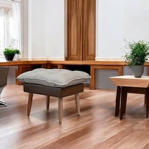 Caracteristicas: - Estrutura: Madeira de eucalipto com espessura de 20 cm - Assento: Fixo, composto por flocos e fibras siliconizadas e percinta elastica - Tecido: linho com a lateral em corino - Pes de 22 cm em madeira macica (enviado desmontados) - Suporte de peso: 120 kg - Garantia de 3 meses