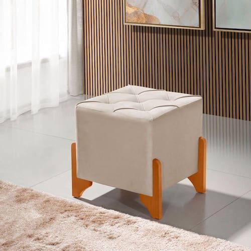 O Puff Roma tem o tecido de veludo com detalhes em sua costura um acabamento impecável. Uma combinação de detalhe sútil que torna o produto leve e ao mesmo tempo autentico. E não para por aí. A combinação entre os pés de madeira, que remetem a natureza, juntamente com assento, proporcionam maior aconchego e conforto.